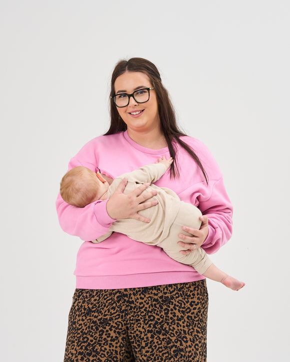 Essential Oversized Breastfeeding Sweatshirt - Hot Pink