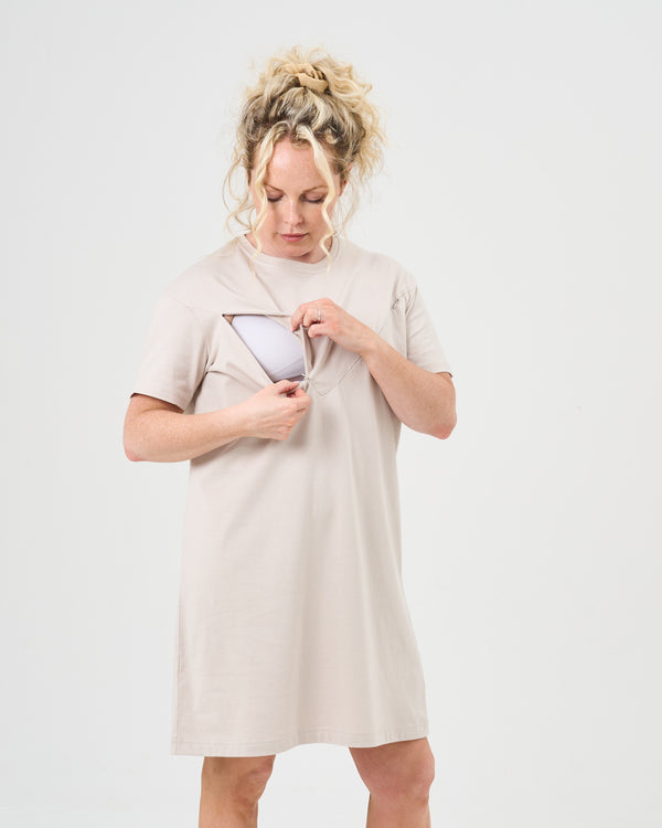 Everyday Oversized Breastfeeding Tshirt Dress - Stone