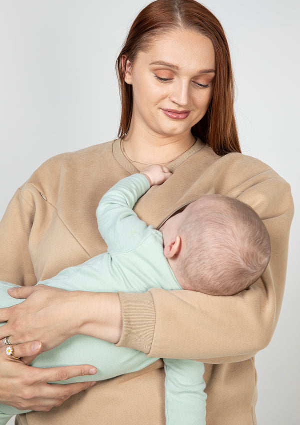 Our beautiful breastfeeding sweater is feminine, functional and an easy-to-wear option for nursing mums. Our luxurious sweaters have been designed with comfort in mind and made to support you throughout your breastfeeding journey. This sweater opens discreetly with two diagonal zips either side which adds coverage encouraging mums to feel comfortable whilst breastfeeding. Our oversized jumpers are a mums wardrobe essential.