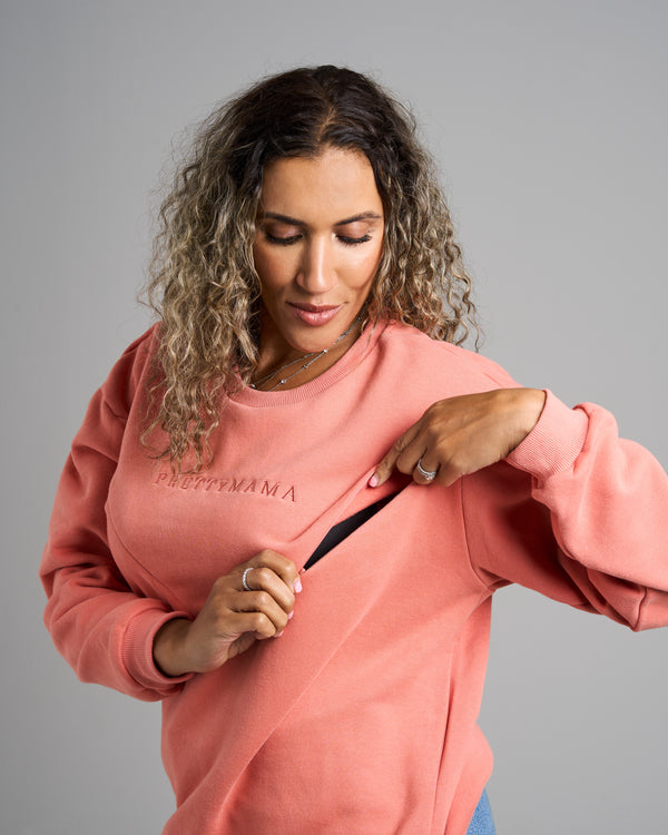 Essential Oversized Breastfeeding Sweatshirt - Coral