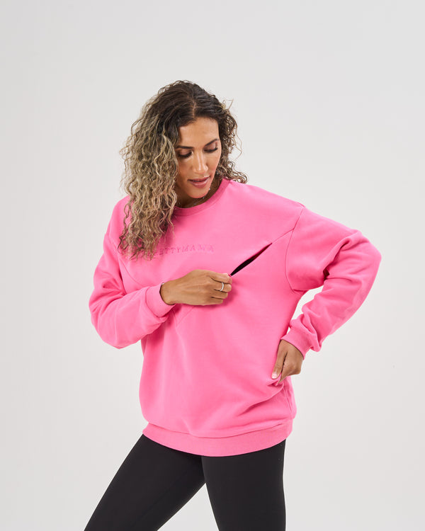 Essential Oversized Breastfeeding Sweatshirt - Hot Pink